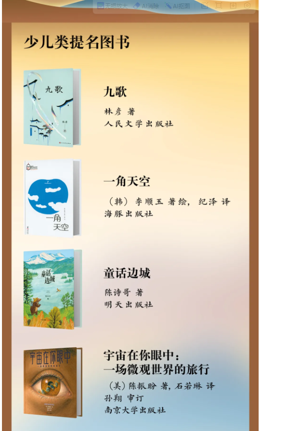 第二十届文津图书少儿类提名图书
